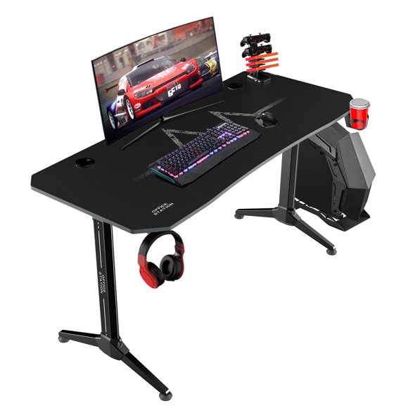 Ofm Essentials Collection 55 Gaming Computer Desk 35 Monitor Shelf Z Base In Black Black Ess 1101 Blk Blk Walmart Com