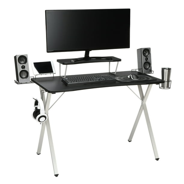 Ofm Essentials Collection 55 Gaming Computer Desk 35 Monitor Shelf X Base In White Black Ess 1100 Wht Blk Walmart Com